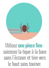 Par "douce", on entend que la tique n'est pas pincée, endommagée ou autrement irritée par l'enlèvement. Pour cette raison, nous déconseillons l’utilisation de matériaux rigides (pinces, pinces, etc.), ainsi que l’utilisation d’huile, de colle, d’électricité, etc., au risque de provoquer l’héritage de la tique et donc la transmission d’agents pathogènes.