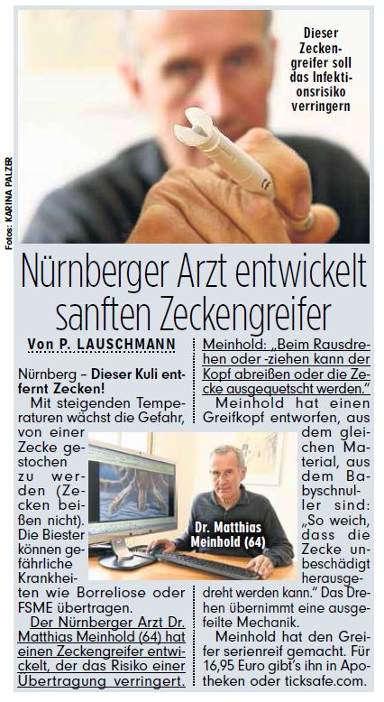 "Nürnberger Arzt erfindet Zeckenzange neu"