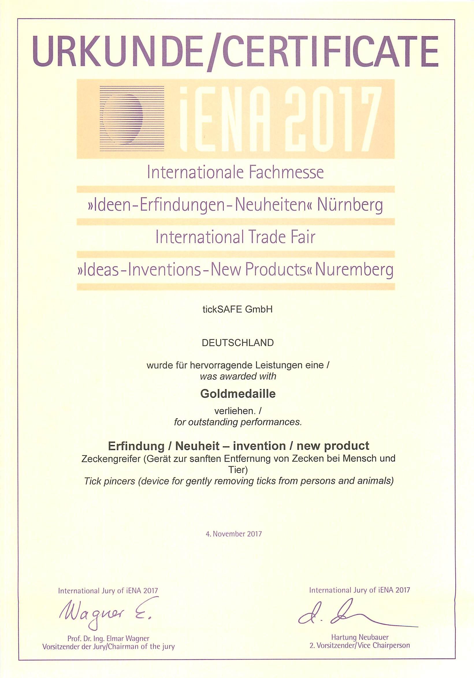 tickSAFE erhält die Goldmedaille für den Zeckengreifer
